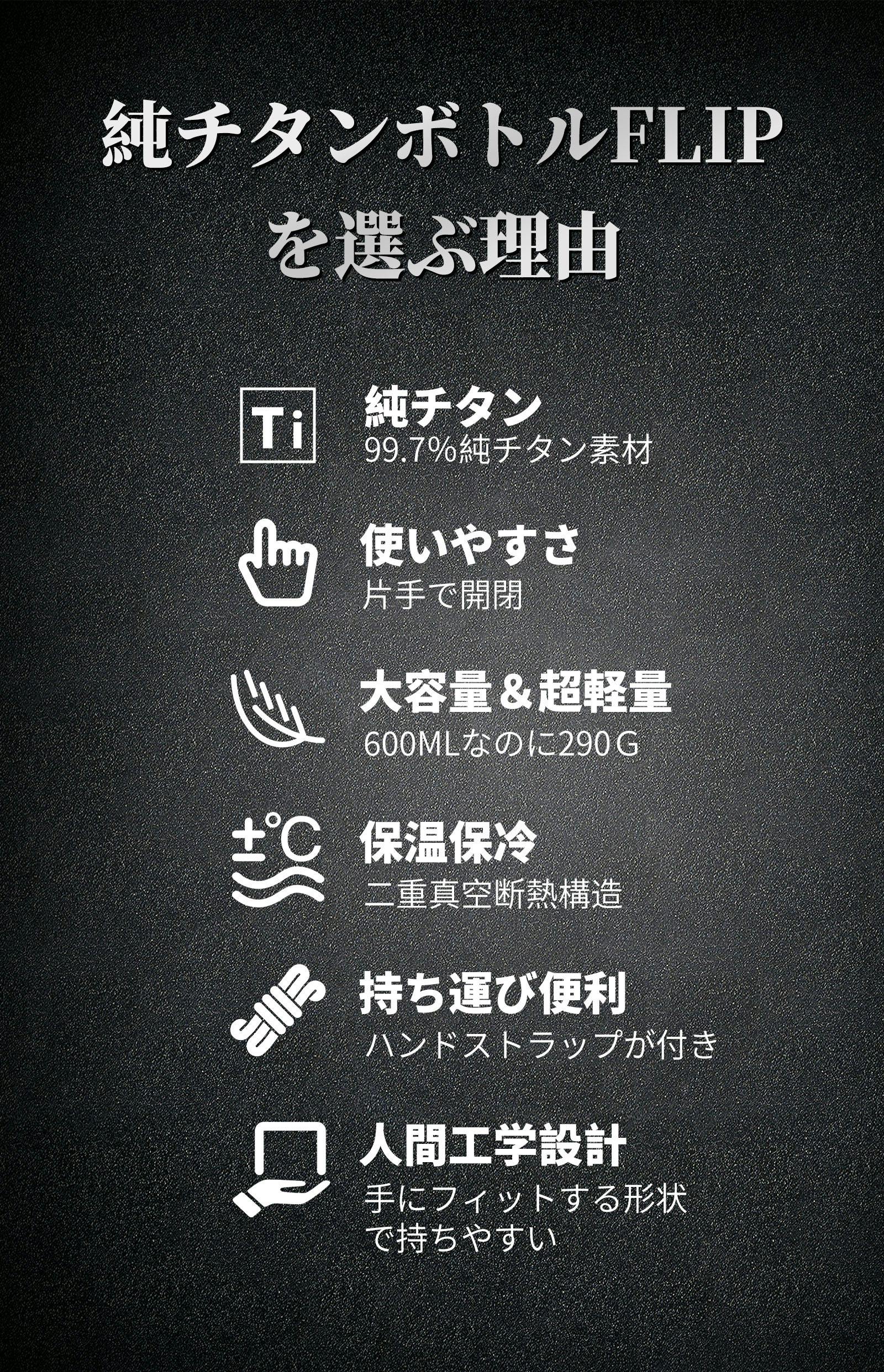 純チタンボトルFLIPは99.7%の高品質純チタンを採用します。