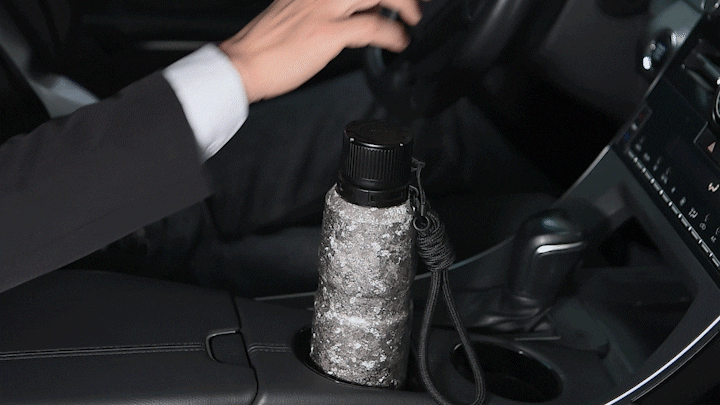 「純チタン真空ボトルFLIP」は、片手で簡単に開けられる便利なデザインで、運転など状況でもスムーズに水分補給ができます。