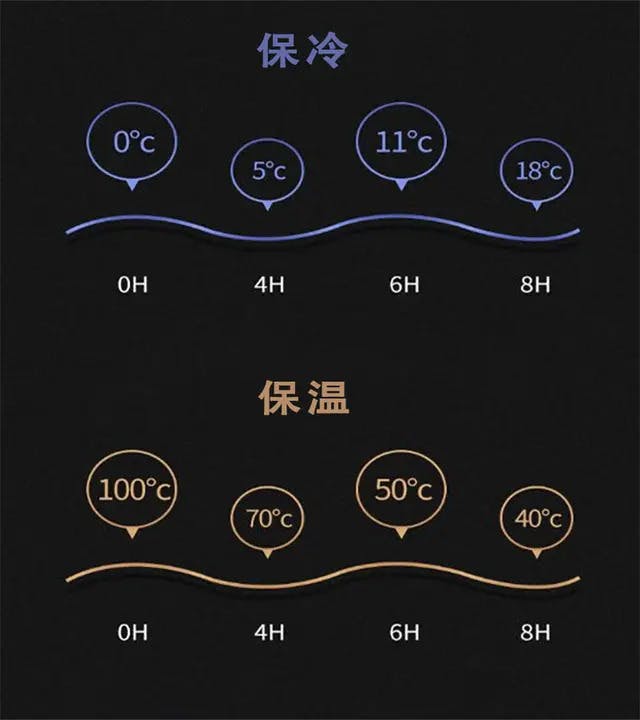 ボトルに入れた飲み物は、100℃のお湯の場合、6時間後で50℃、4℃の冷水の場合、6時間で約11℃の温度維持が可能です。