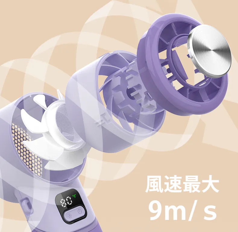 SUPWELL冷却プレート搭載ハンディ扇風機F2は、最高13,000RPMの超高速ブラシレスモーターを採用し、集風効果を高める独自の風筒設計と組み合わせることで、最大風速9m/sを実現!