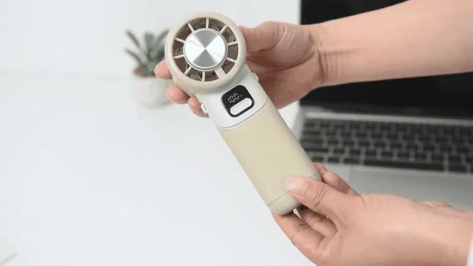 回転式の折りたたみデザインを採用しており、手に持つだけでなく、デスクに置いても快適に使えます。角度調整も自由自在で、顔や首元、手元など、涼しくしたい場所にピンポイントで風を届けます。