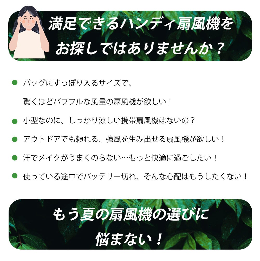 アウトドアや旅行、通勤・通学など、どこへでも気軽に持ち運べる、まさに理想的なハンディ扇風機です!