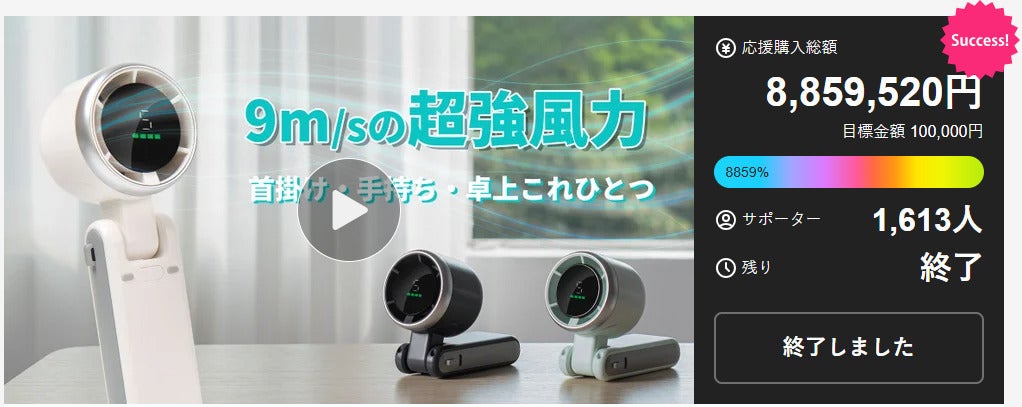 昨年、Makuakeにて1,600人以上の方に応援購入いただいた「SUPWELLハンディ扇風機」が、さらに進化して第2弾が誕生!