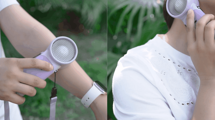 ただのハンディ扇風機ではありません!本製品には冷却プレートが搭載されており、直接肌に触れるだけで瞬時にクールダウンできます。