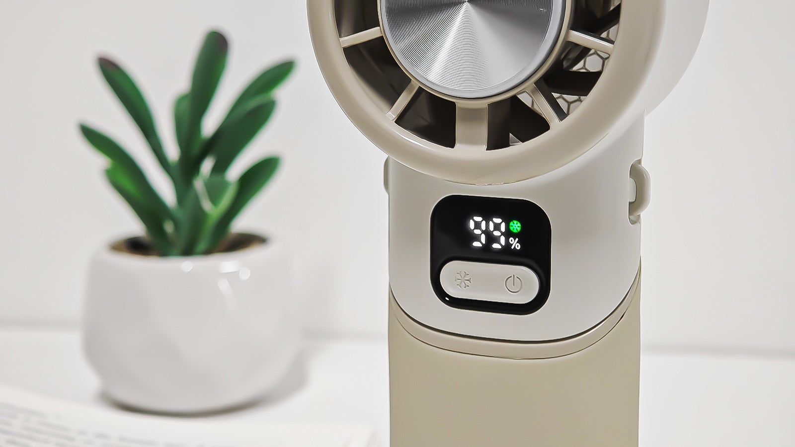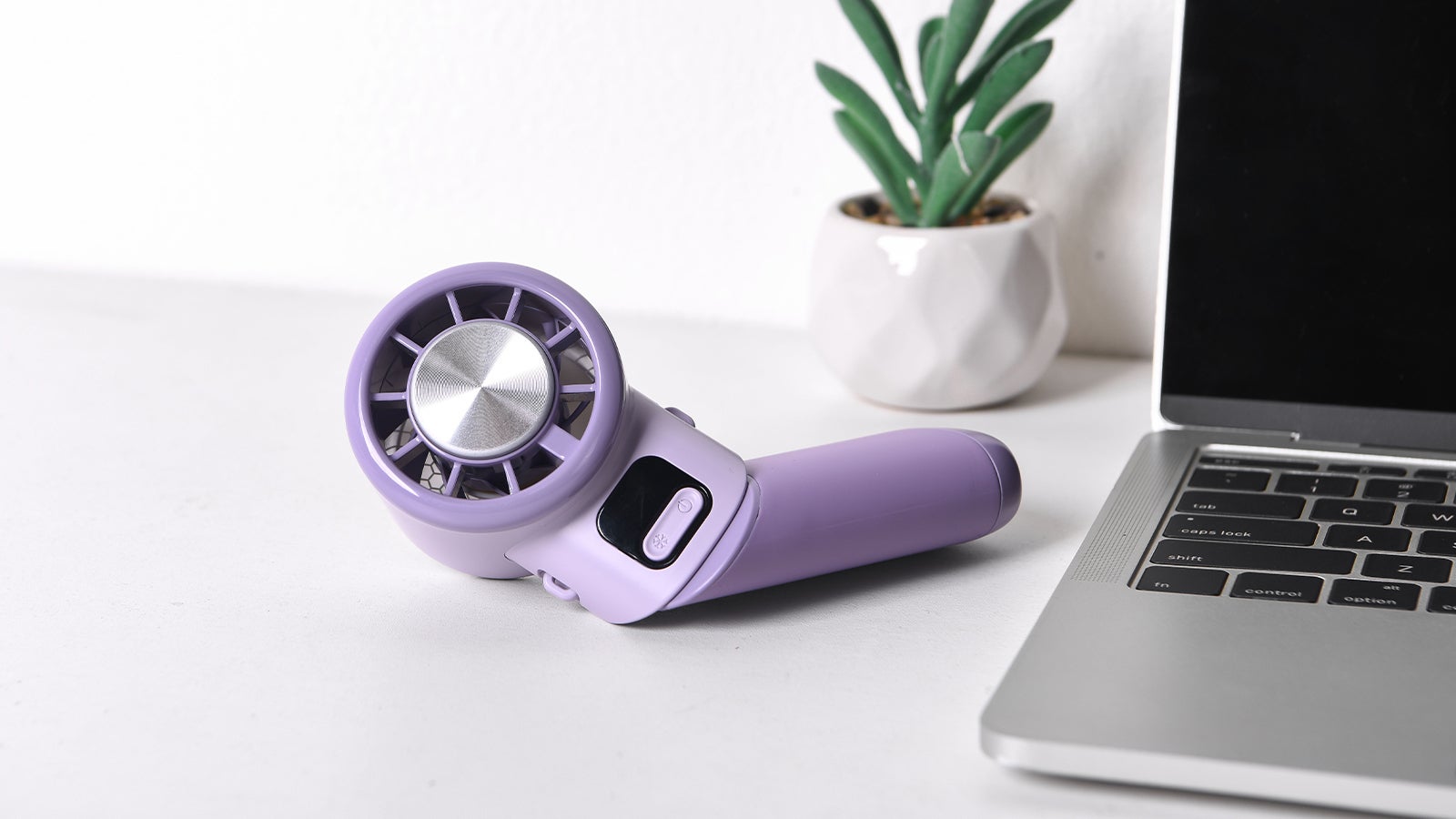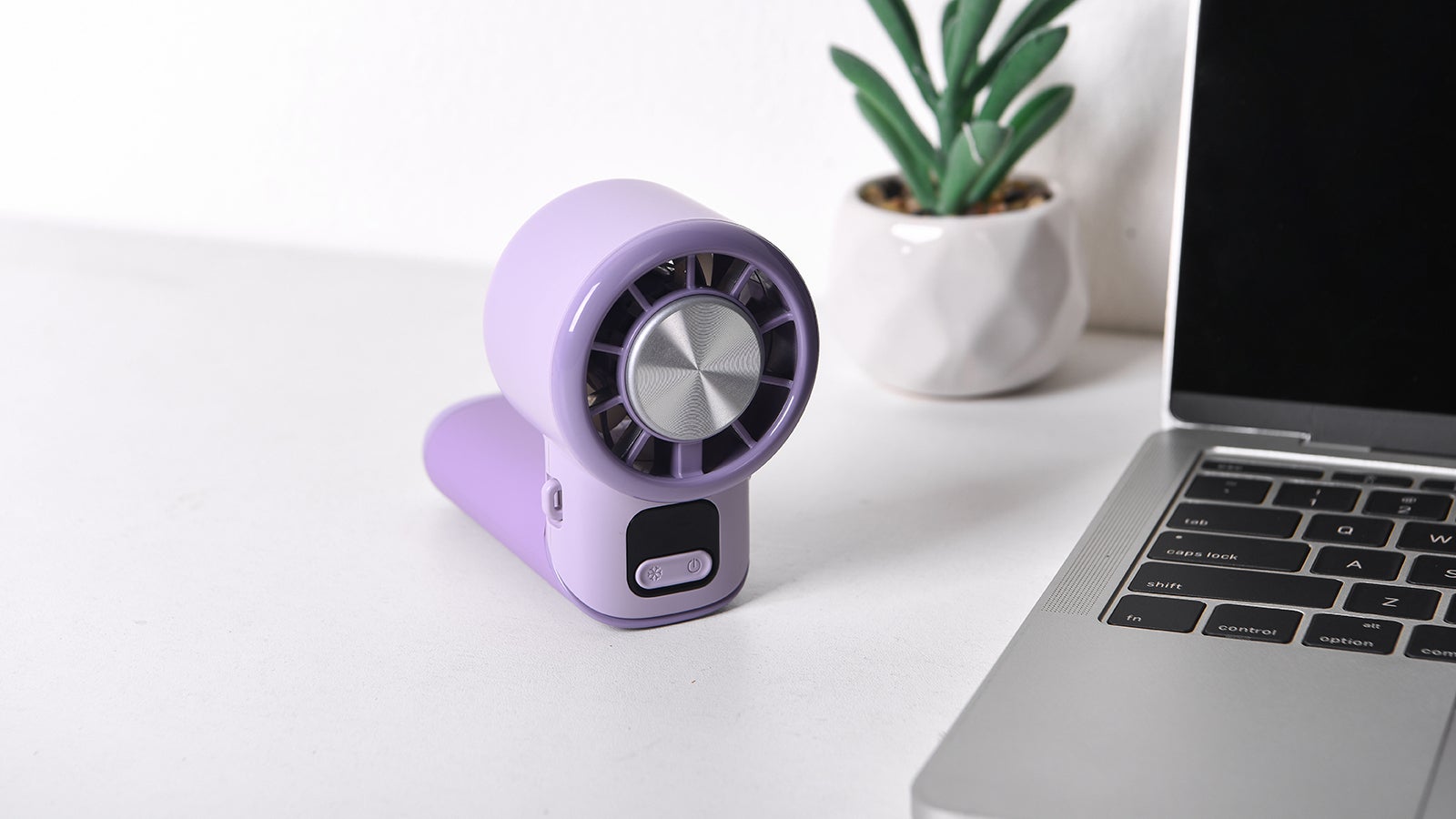 回転式の折りたたみデザインを採用しており、手に持つだけでなく、デスクに置いても快適に使えます。角度調整も自由自在で、顔や首元、手元など、涼しくしたい場所にピンポイントで風を届けます。