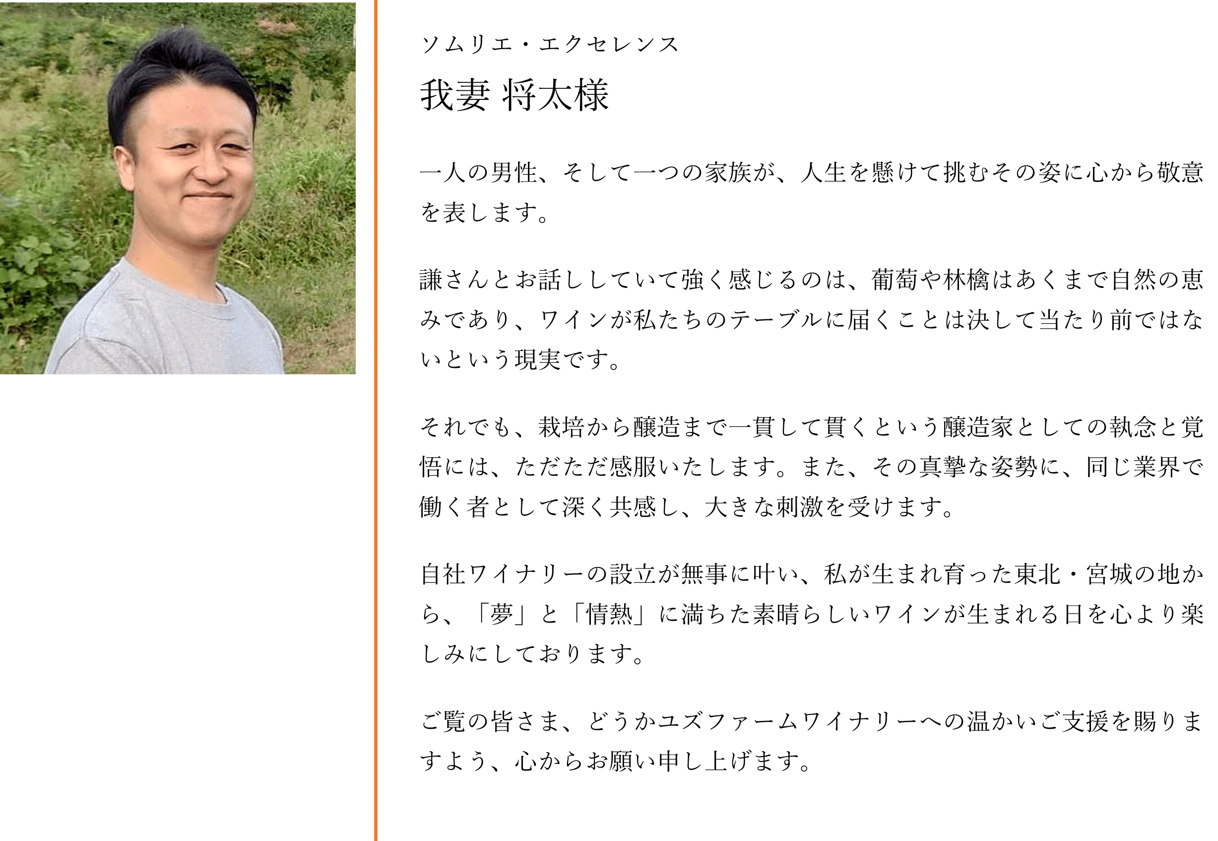 株式会社ユズファームワイナリー 代表取締役 荒井 謙