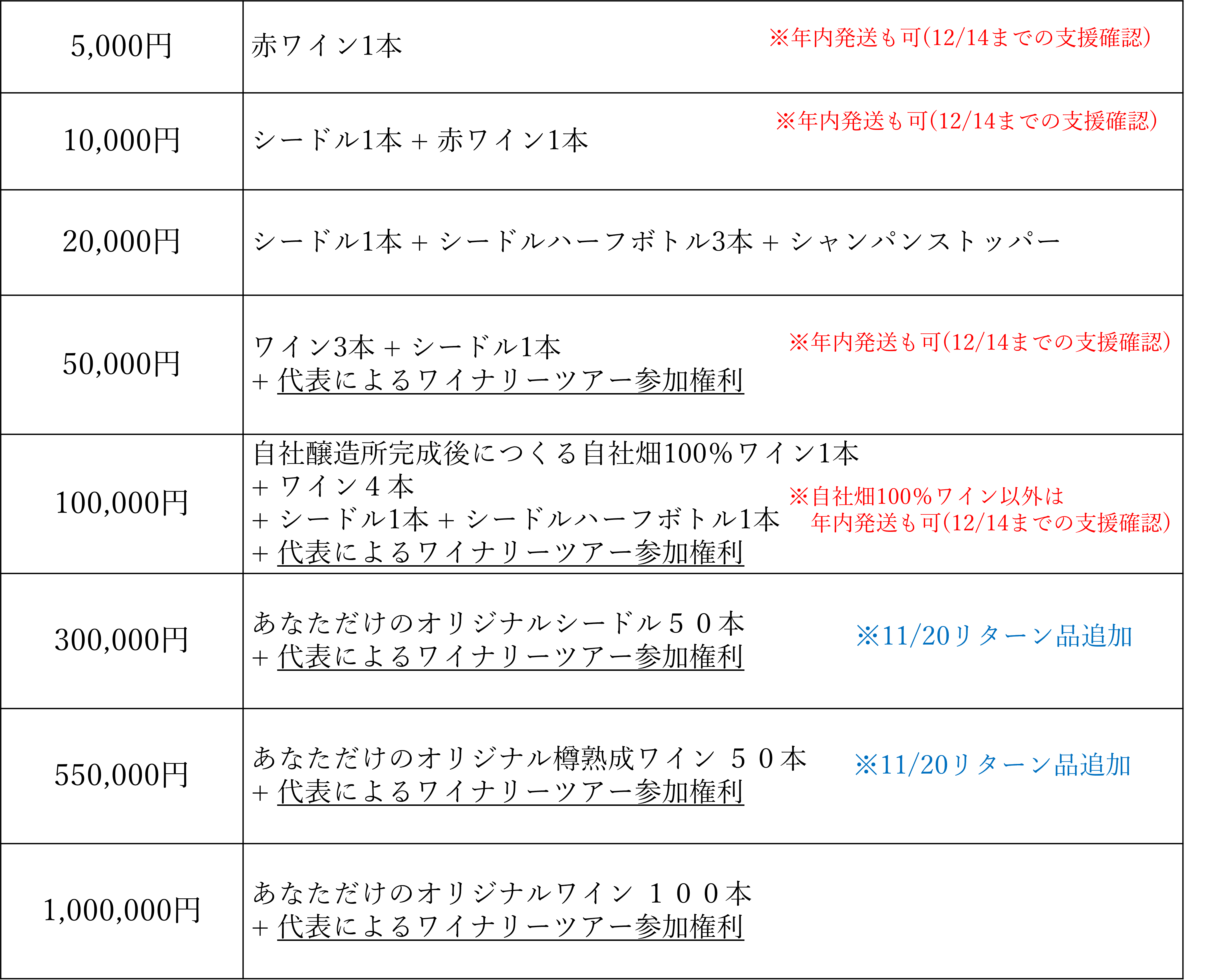 皆さまの支援があって初めて、ワイナリー設立という夢を“本当に”現実にできます。