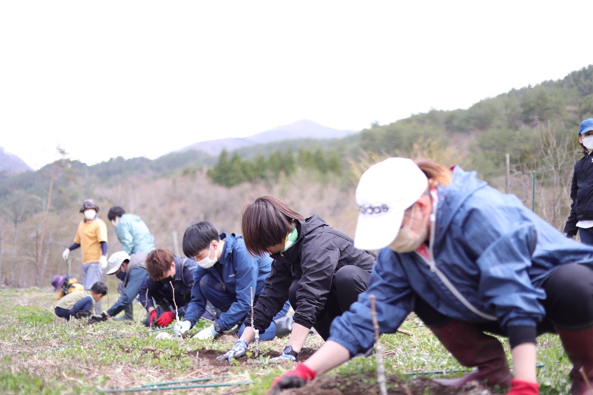 ボランティアの皆様方の植樹風景 いつも私たちを支えてくださっている大切な仲間ですぶどうの苗木:約4,350本(13品種)を栽培中
