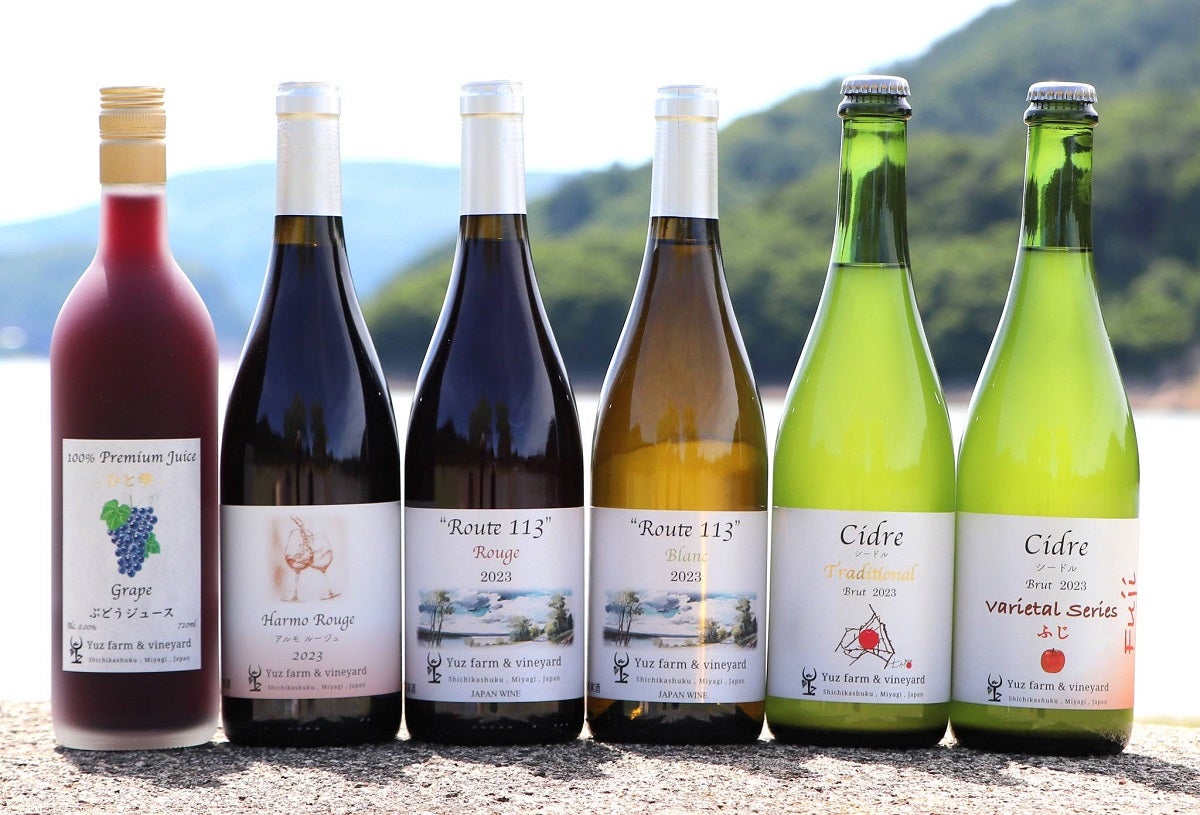 現在は、七ヶ宿町の自社畑で育てたぶどうやりんごを原料に、「委託醸造」という形でワインやシードルを製造・販売しています。