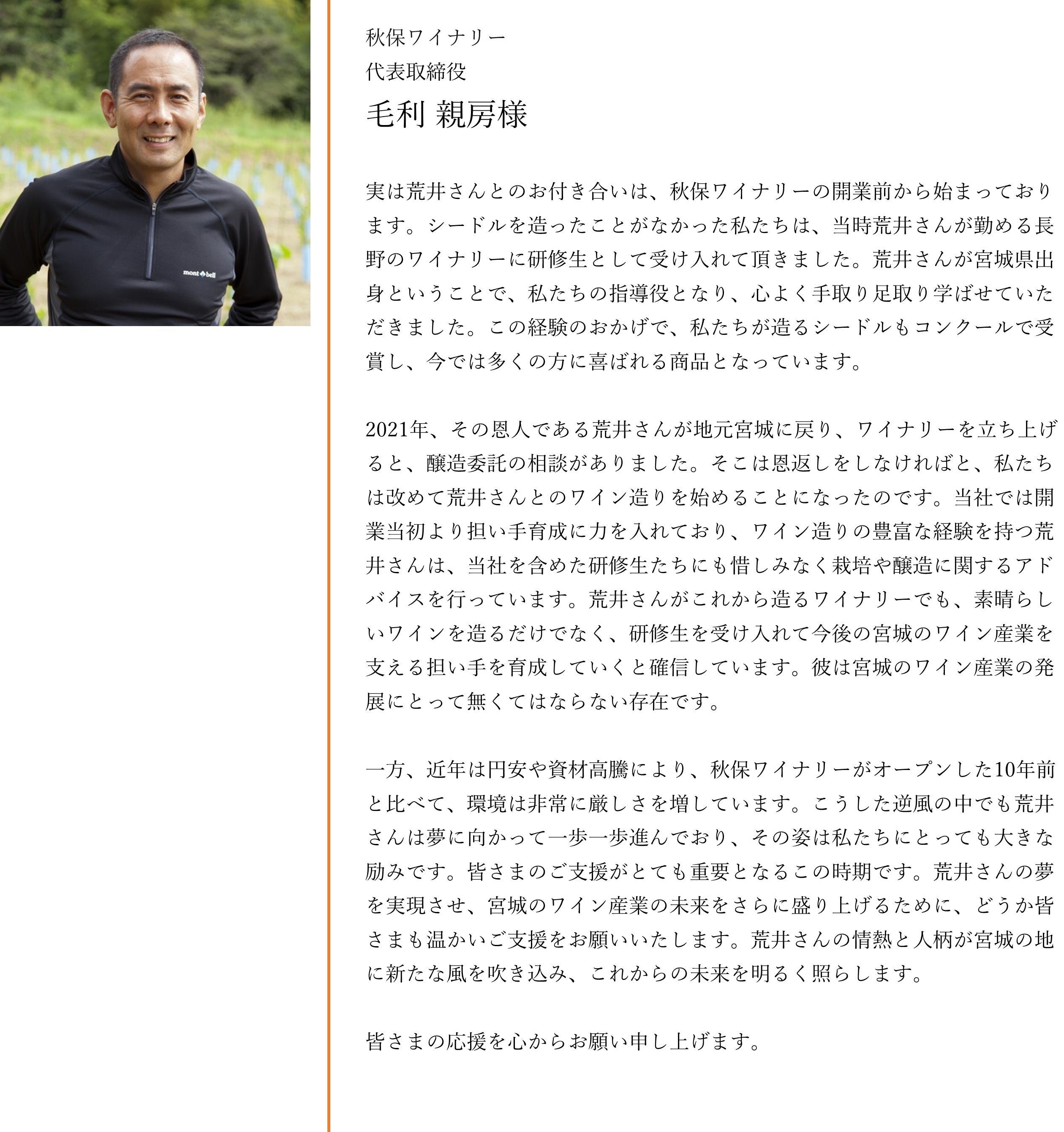 「七ヶ宿から、世界と戦えるワインを」――その夢を一緒に形にしていただけたら幸いです。