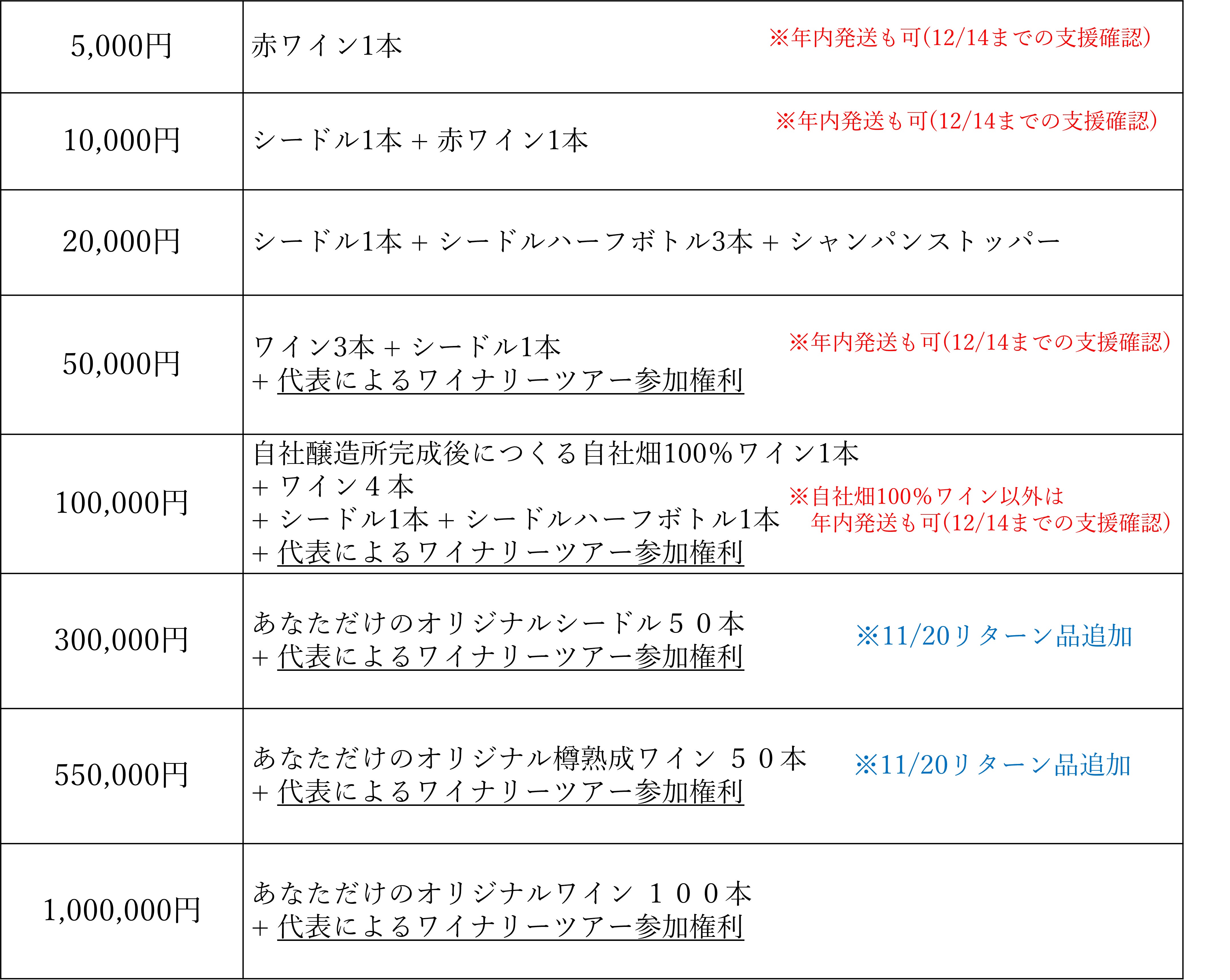 ※「年内発送も可」と記載のあるリターン品に関しては、