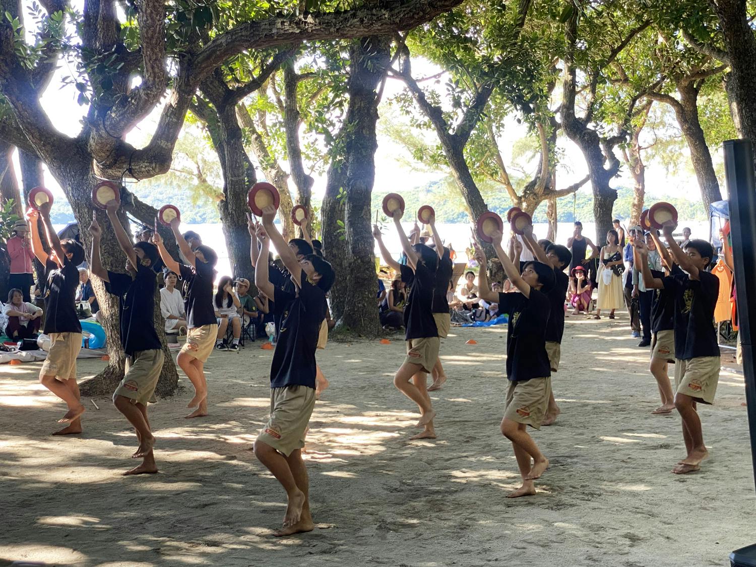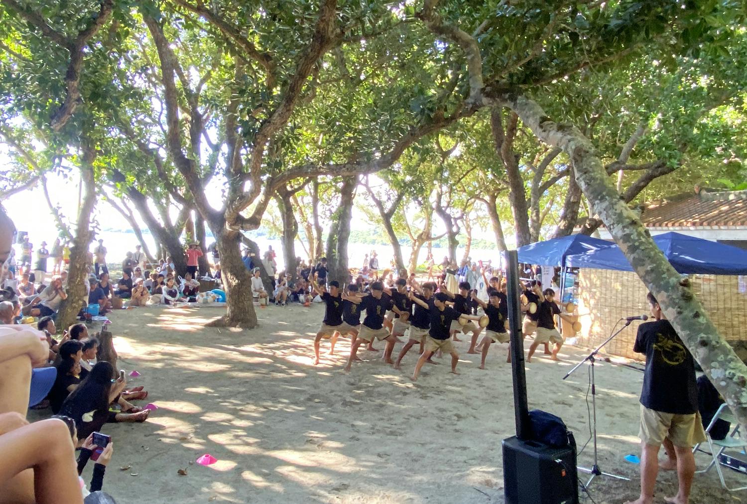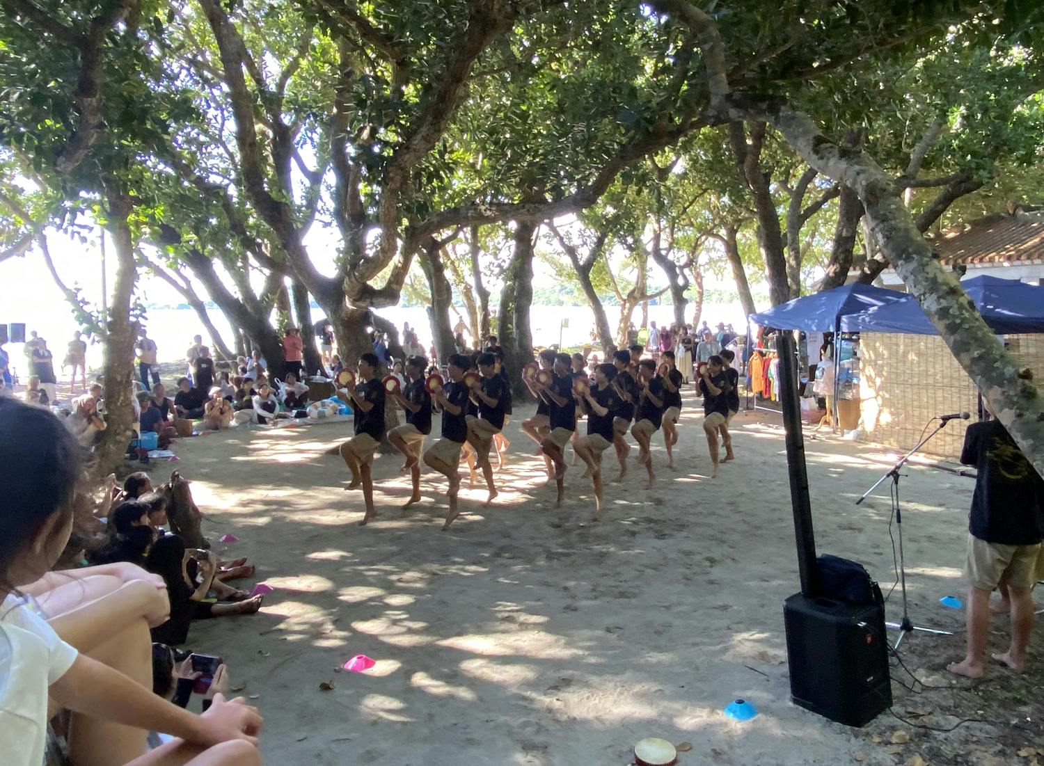 小さい頃から遊びに来ていた、底地ビーチでの演舞は、砂浜を踏みしめながらの演舞・・・いつもの舞台の上とは全く違う雰囲気と音の響きを感じながらの演舞!