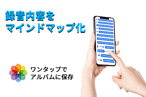 録音内容をAIで要約できるほか、会議など録音の内容を視覚化してわかりやすく整理できるマインドマップもあっという間に作成し、アルバムに保存可能できるのもポイント。