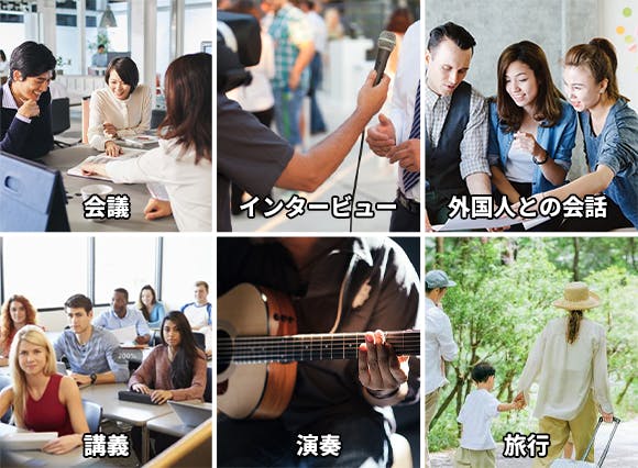 アプリには同時翻訳機能(聞き取り翻訳)も搭載。相手がしゃべっているときに話を精確に聞き取り、しゃべり終わったら設定済みの言語に翻訳しスマホ画面に表示されます。。国際会議や講義、字幕のない外国語動画の視聴などに最適!