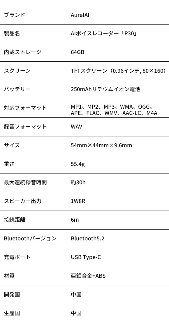 🔋コンパクトな見た目ながら、250mAh大容量バッテリーを内蔵。約30時間もの連続録音が可能なので、重要な会議や講演、インタービューなど、長時間の収録にも対応。