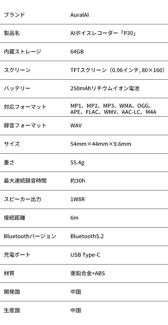 🔋コンパクトな見た目ながら、250mAh大容量バッテリーを内蔵。約30時間もの連続録音が可能なので、重要な会議や講演、インタービューなど、長時間の収録にも対応。