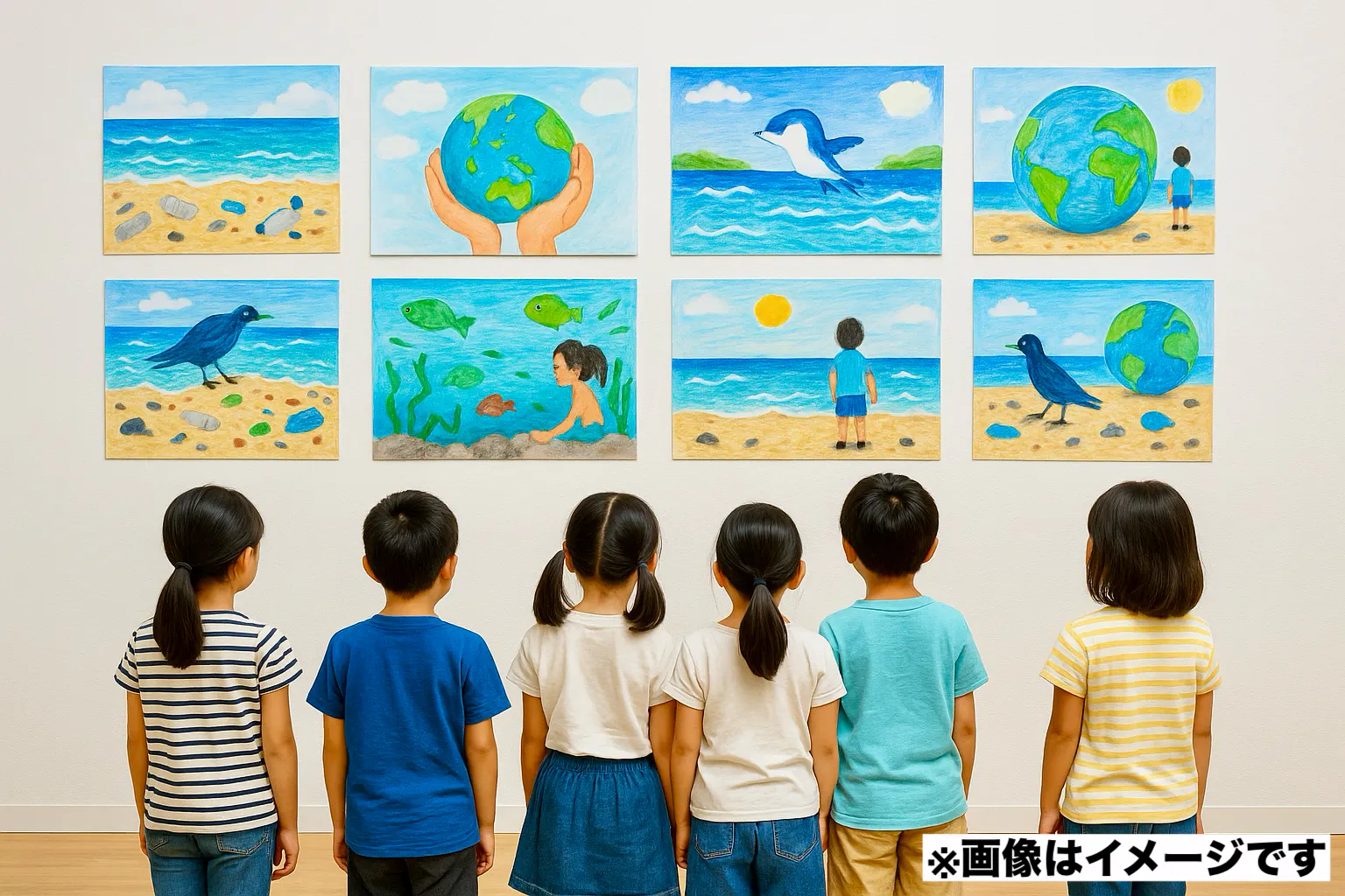 ③参加型ワークショップにおいては、環境教育の専門知識をもつ機関の方にご協力いただき、子どもたちへ海洋ごみについての学びの機会を提供し(出張教育の実施は、施設・団体様とのご相談の上、必要に応じて柔軟に対応しています。)、絵画作品を制作していただきます。