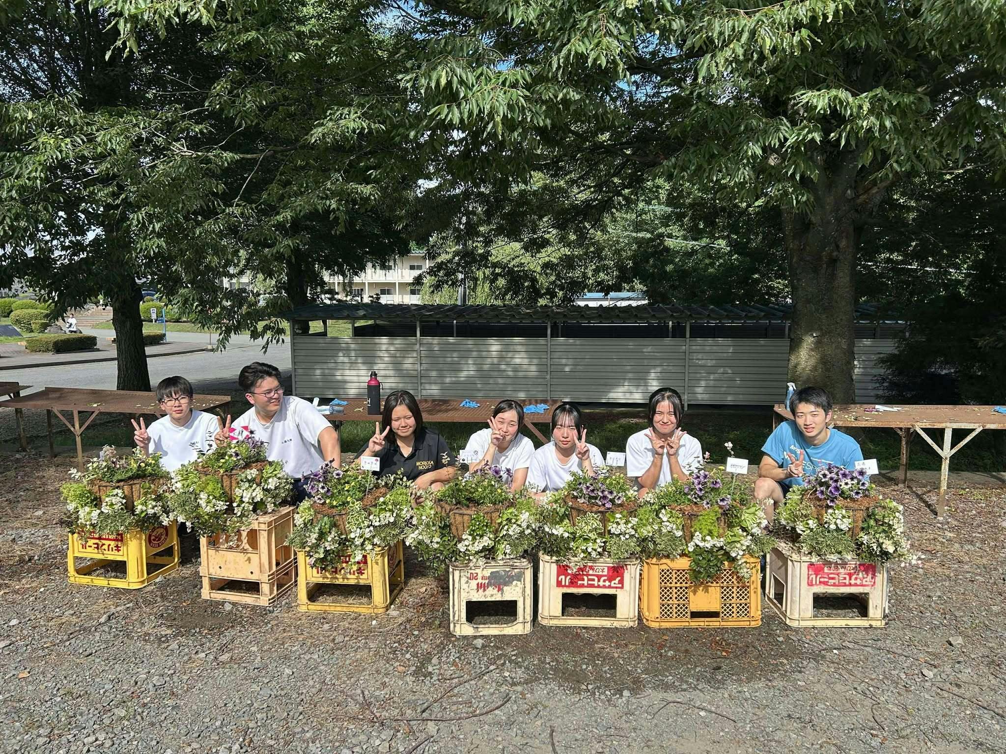 盛岡農業高校植物科学科 草花班の生徒さんが一回目のハンギングバスケットを制作していただきました