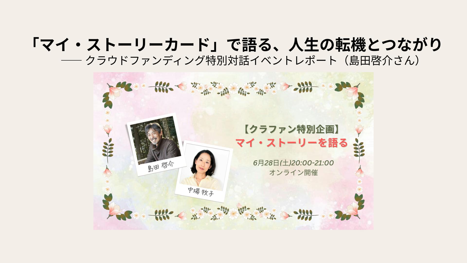 昨夜、クラファン特別企画として、マインドフルネス・ビレッジ村長の島田啓介さん(だ〜さん)と一緒に、「マイ・ストーリーカード」を使った対話イベントを開催しました。