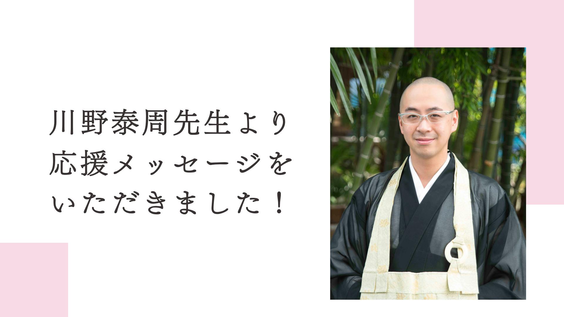 精神科医として、そして禅僧として、日々多くの人の心と向き合ってこられた川野泰周先生から、今回のプロジェクトに向けて心強い応援の言葉をいただきました。