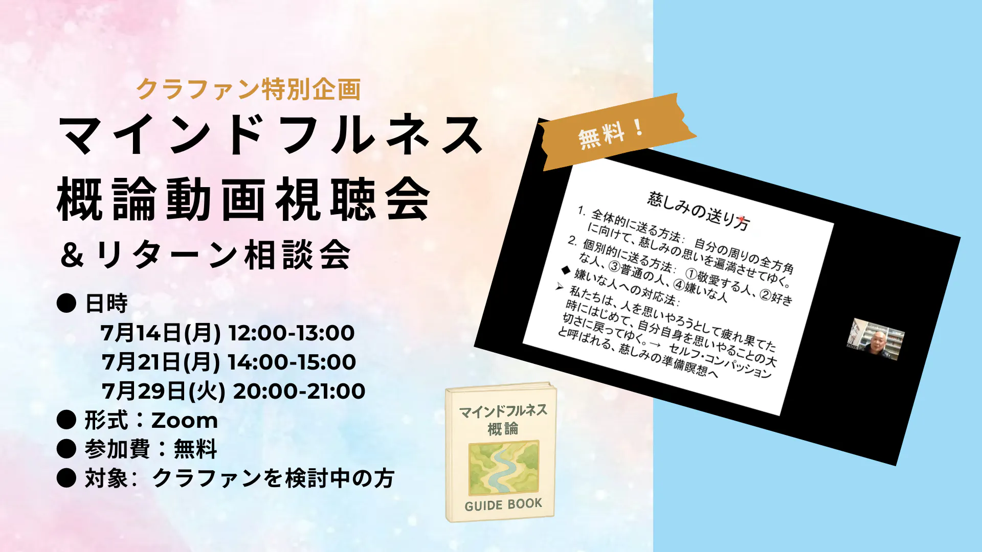 また、「この場ならでは」ということで、「一般のマインドフルネス講座」と「概論」の違いについてもお話ししていきます。