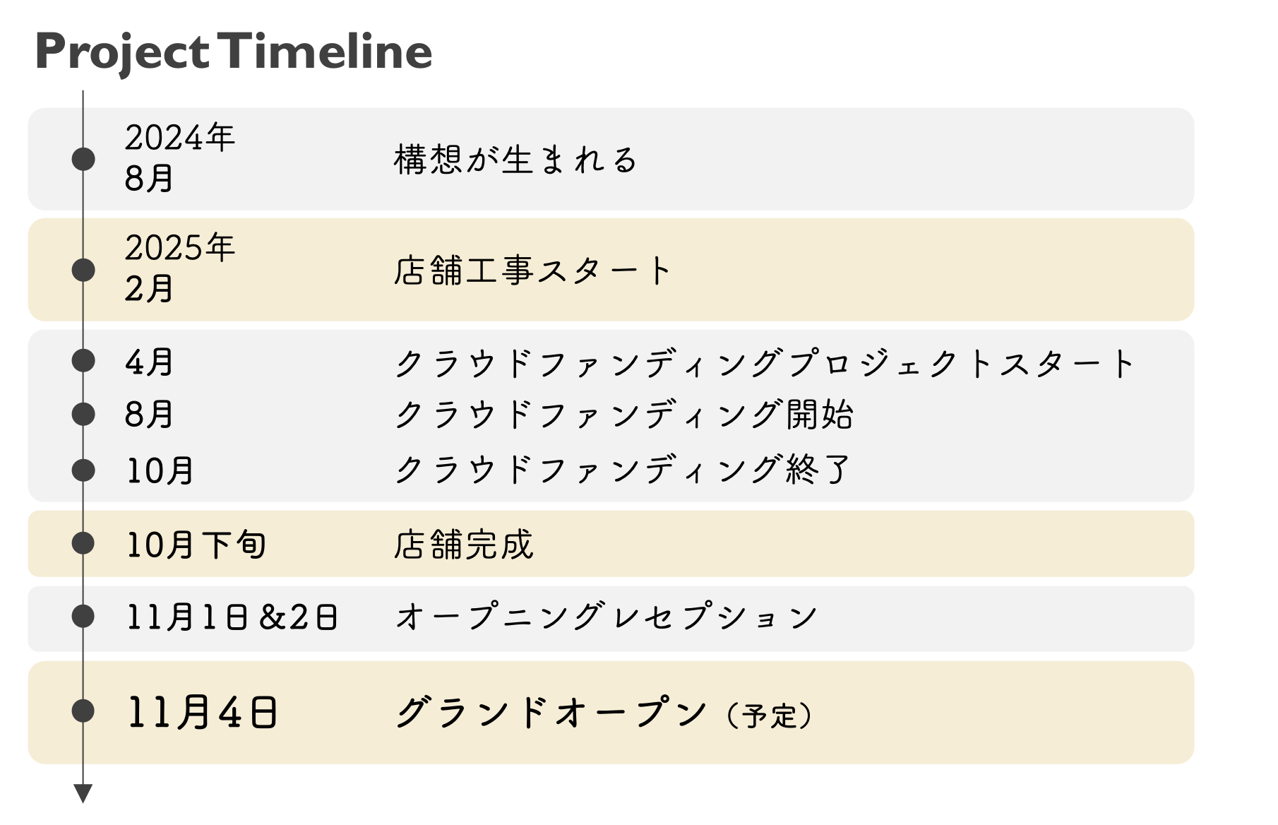 僕たちはこの地でチャレンジがしたいのです。とにかくたくさんの人を楽しませたい!本気です。まだまだ手探りながら少しずつ実現に近付いています。でも、まだ一歩。もう一歩、あゆみを進めたい。それを叶えるために、新しいお店という形を選びました。