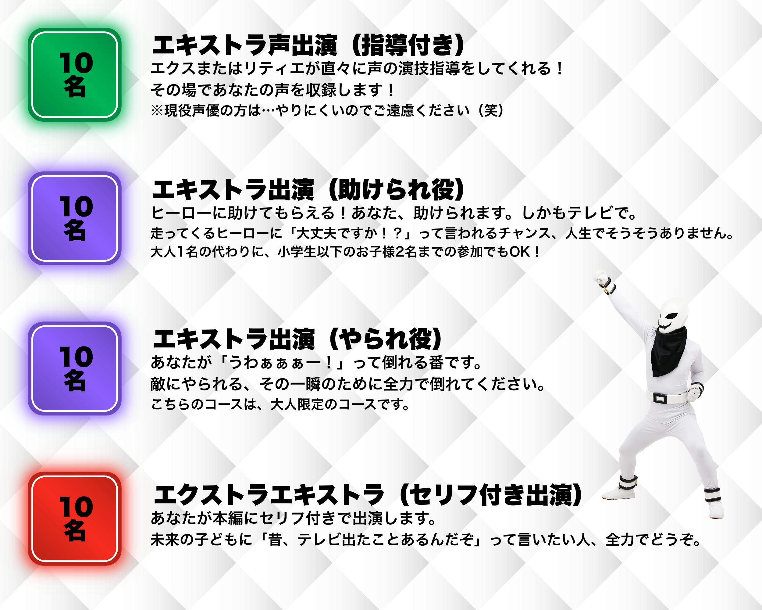 2025/12/01 13:22エキストラにご参加予定の皆さまへご案内いたしました、「メール確認のお願い」について、「エキストラ(声)コース」に関する説明が不足していたため、こちらで補足をさせていただきます。■「エキストラ(声)コース」についてこちらのコースに関しては、現時点ではまだ個別のご案内メールをお送りしておりません。2026年1〜2月頃にあらためて詳細をご案内する予定です。準備が整い次第、順次ご連絡いたしますので、もうしばらくお待ちいただけますと幸いです。なお、《声エキストラ(指導付き)》コースについては、2026年3〜5月頃にご案内予定です。記載が不足してしまい、ご心配やご迷惑をおかけしましたこと、心よりお詫び申し上げます。 もっと見る