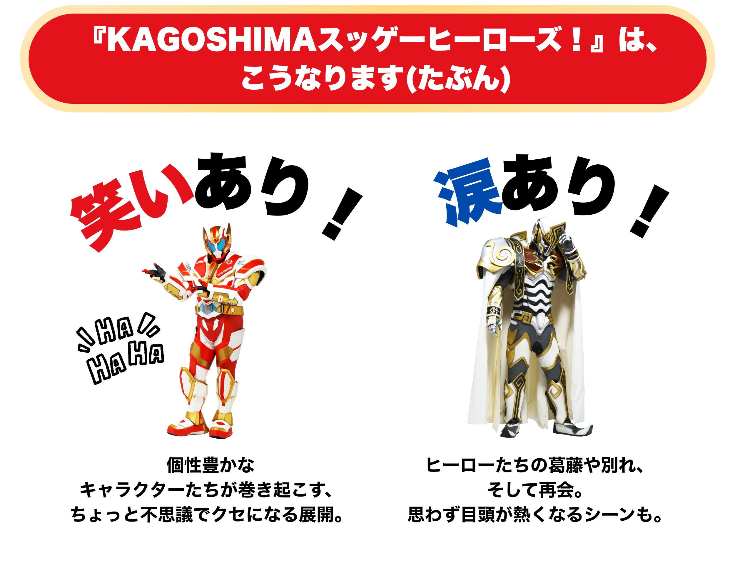 クラファン大成功おめでとう御座います! スッゲーヒーローズのこれまでの頑張り、繋がり、そして多くの方から愛されている証だと思います! 安全第一で、素敵な番組制作頑張ってください!