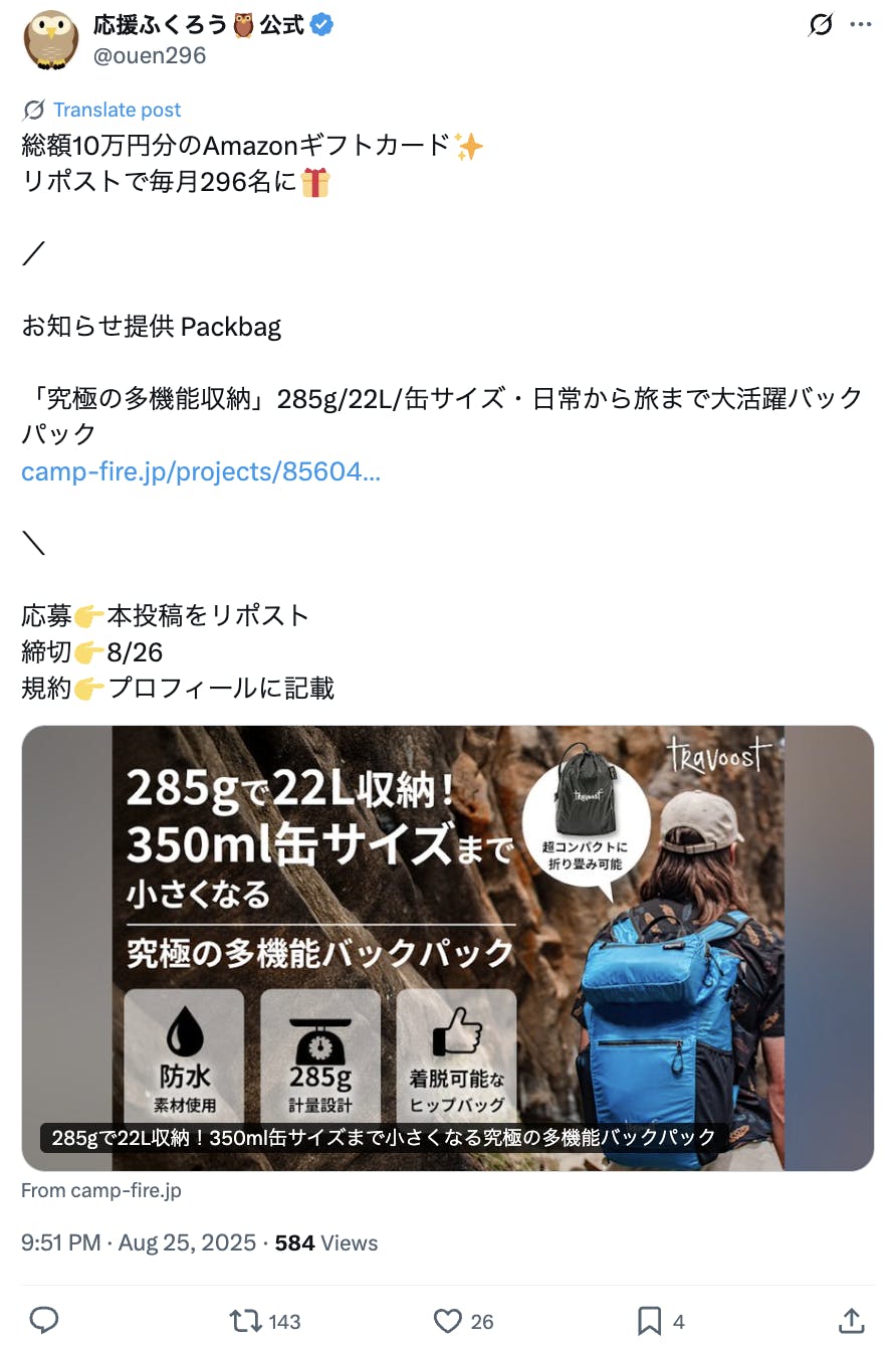 8月25日、「THE ULTIMA 22」は X(Twitter)で応援ふくろう様が投稿をシェアされました。