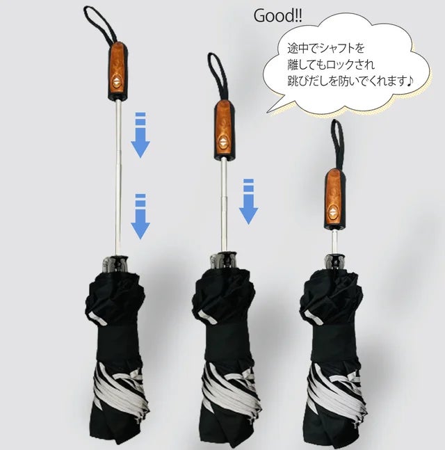自動開閉傘は、シャフトを押し込む際に手を離すとバネが逆戻りして危険な時がありますよね。