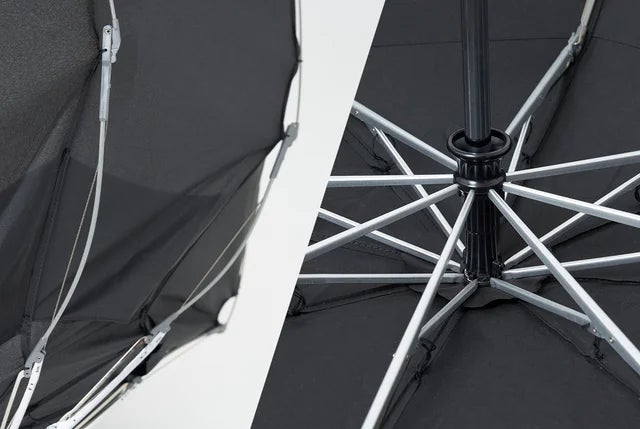 親骨の素材は強度・弾力性に優れていてるグラスファイバー+アルミを採用しているので、仮に逆そりしても骨が折れにくなっています。