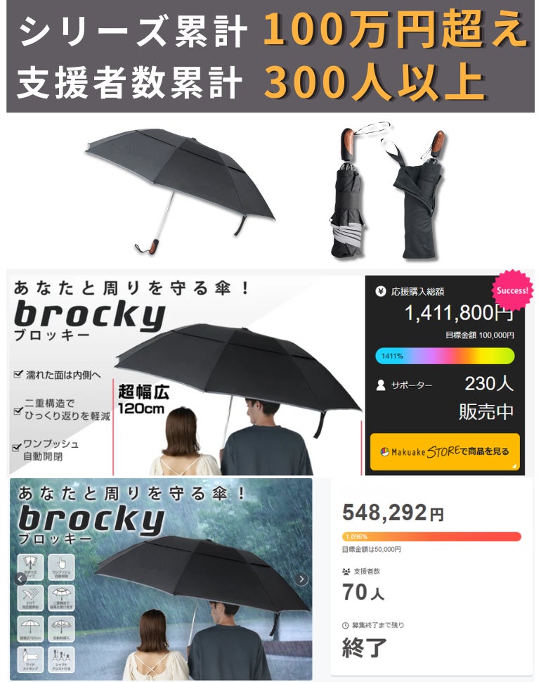 2026/04/01 12:00こんにちは!NWorldです。本日 4月1日 12:00 より、新プロジェクトを開始いたしました!■プロジェクト概要プロジェクト名:【傘の不満ゼロへの進化】悩み解消できる機能をこの1本に|ワンプッシュ自動開閉傘公開期間:2026年4月1日(水)12:00 ~ 2026年5月31日(日)23:59■プロジェクト内容についてbrocky(ブロッキー)とは、「使いやすさ × 便利さ × 快適さ」を兼ね備えた、傘の不満を解消してくれる次世代の折りたたみ傘です。2022年に第一弾をリリースし、190万円を超える応援購入をいただきました。1作目で応援購入いただいたサポーターの皆さまからのご意見も反映し、さらなる改良を加えた第二弾をリリースすることになりました。<機能の追加・変更点>1.晴雨兼用UVカット素材を採用して紫外線を大幅に遮断。365日いつでもお使いいただけます。2.軽量・コンパクト化軽量でコンパクトなデザインにより、使いやすさが向上。3.新色を採用新たにグレーを追加し、2色展開に。4.付属カバーにカラビナを装備バッグなどに簡単に取り付け可能で、紛失の心配を軽減。5.巻き取りストラップにマジックテープを追加傘を開いた状態で2つ折りが可能となり、視界の妨げを軽減。興味をお持ちいただけましたら、ぜひチェックしてみてください!<プロジェクトページはこちら>↓ ↓ ↓https://camp-fire.jp/projects/934196/view もっと見る