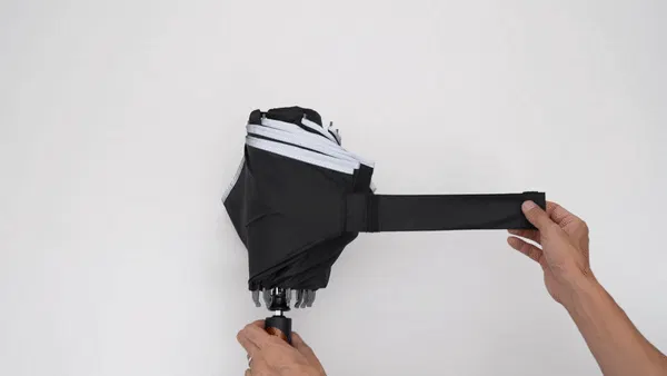 通常の傘は濡れた部分が外側になりますが、逆折りたたみ式にすることで濡れた部分を内側に。