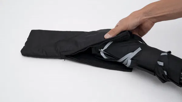 また付属ケースにはファスナーを導入して、入り口を大きく開けるように設計しているので、使用後のかさばる傘でもストレスフリーで収納することができます。