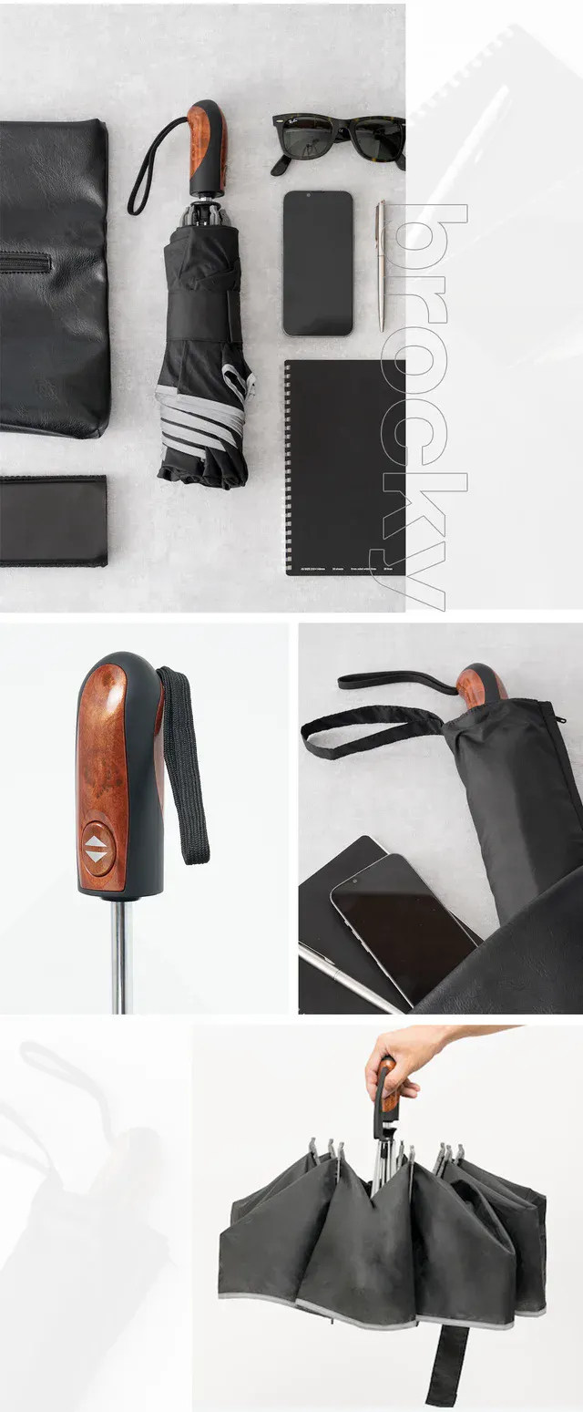 雨嫌いが作った傘。お悩みをすべて解決できる、機能をたくさん詰め込んだワンプッシュ自動開閉逆折りたたみ傘 『brocky』です。