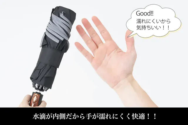 逆折りたたみ式傘は、水滴が内側にくることで閉じる際に手が濡れにくくなるので、不快感が減少し快適です!