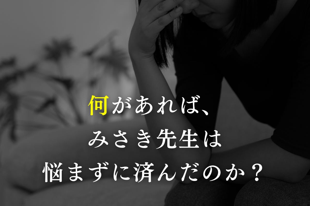 今、この瞬間も日本全国で「みさき先生」のように悩まれている方々がいます。