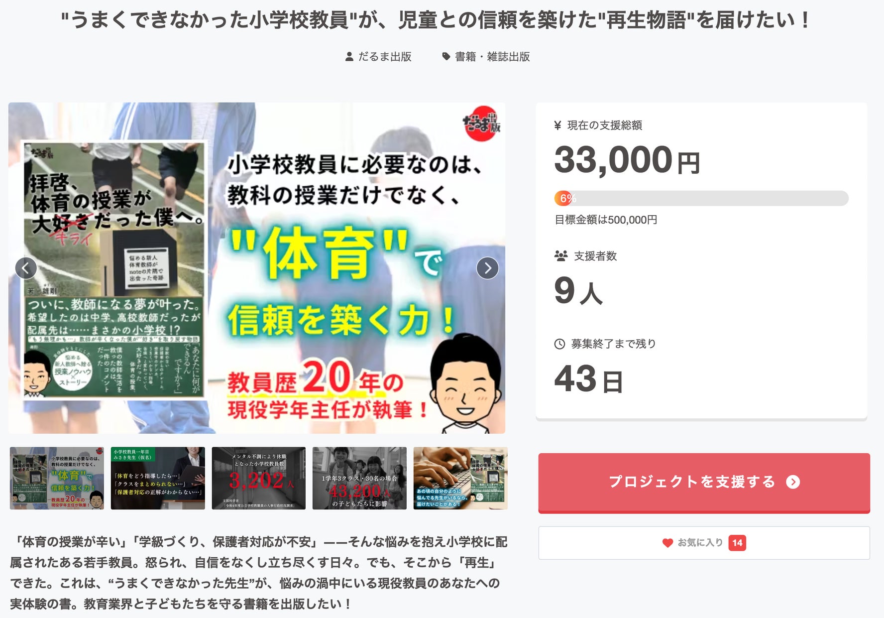 クラウドファンディング4日目となりました!現在9名のあなたから、33,000円のご支援をいただいております。ありがとうございます!