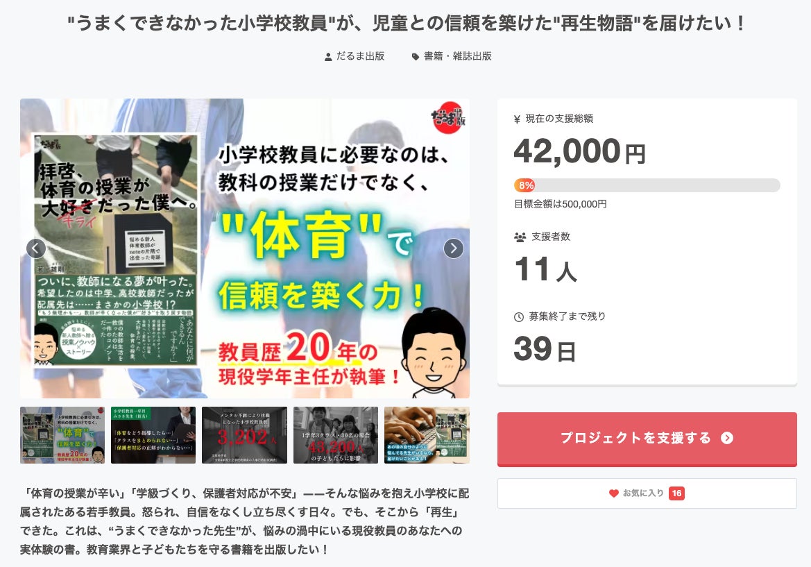 クラウドファンディング開始から7日目となりました!現在11名の皆さんから、42,000円のご支援をいただいております。
