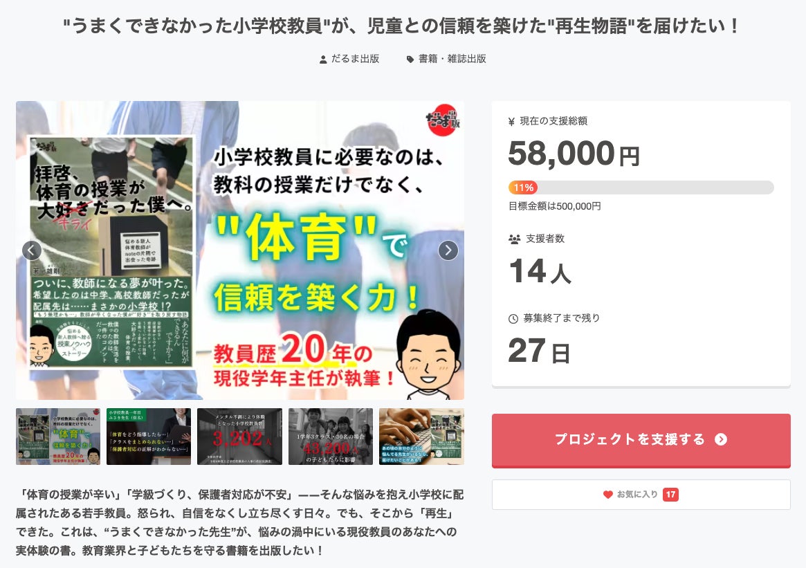 クラウドファンディング開始から18日目となりました!現在14名のあなたから、58,000円のご支援をいただいております。