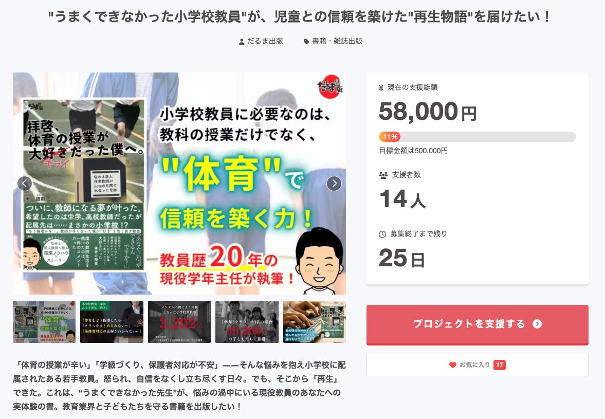 クラウドファンディング開始から21日目となりました!現在14名のあなたから、58,000円のご支援をいただいております。