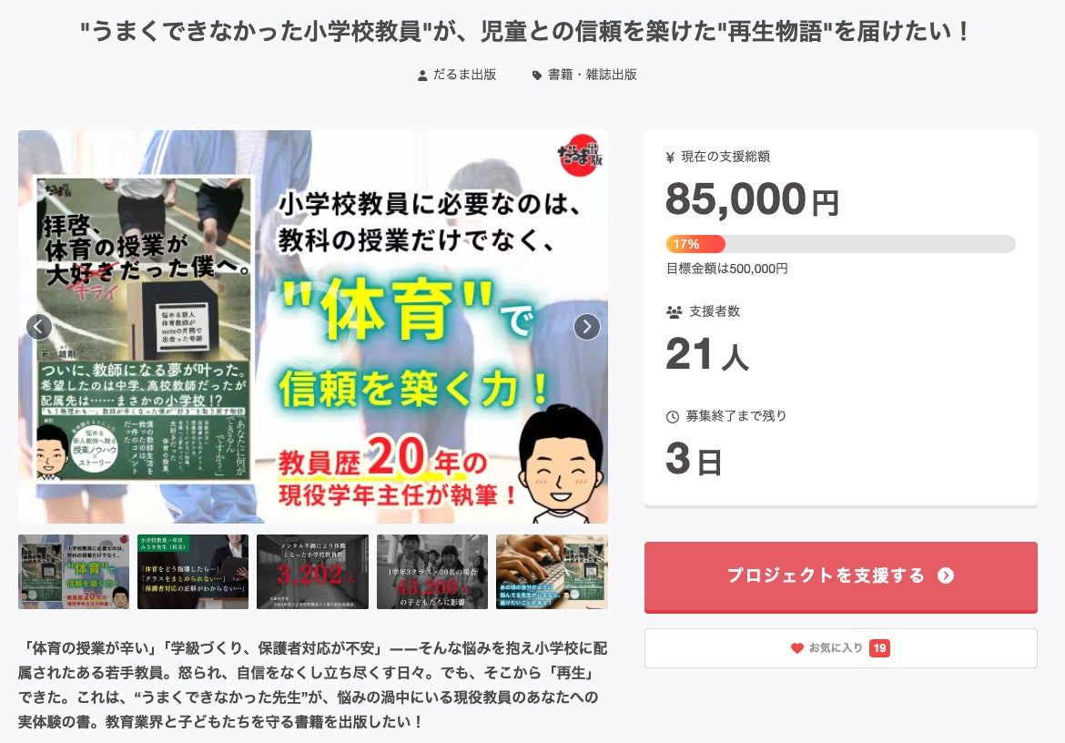 「この書籍・プロジェクトを、悩んでいる教員の方に届けたい!」そんな想いから、クラウドファンディングに挑戦しています。