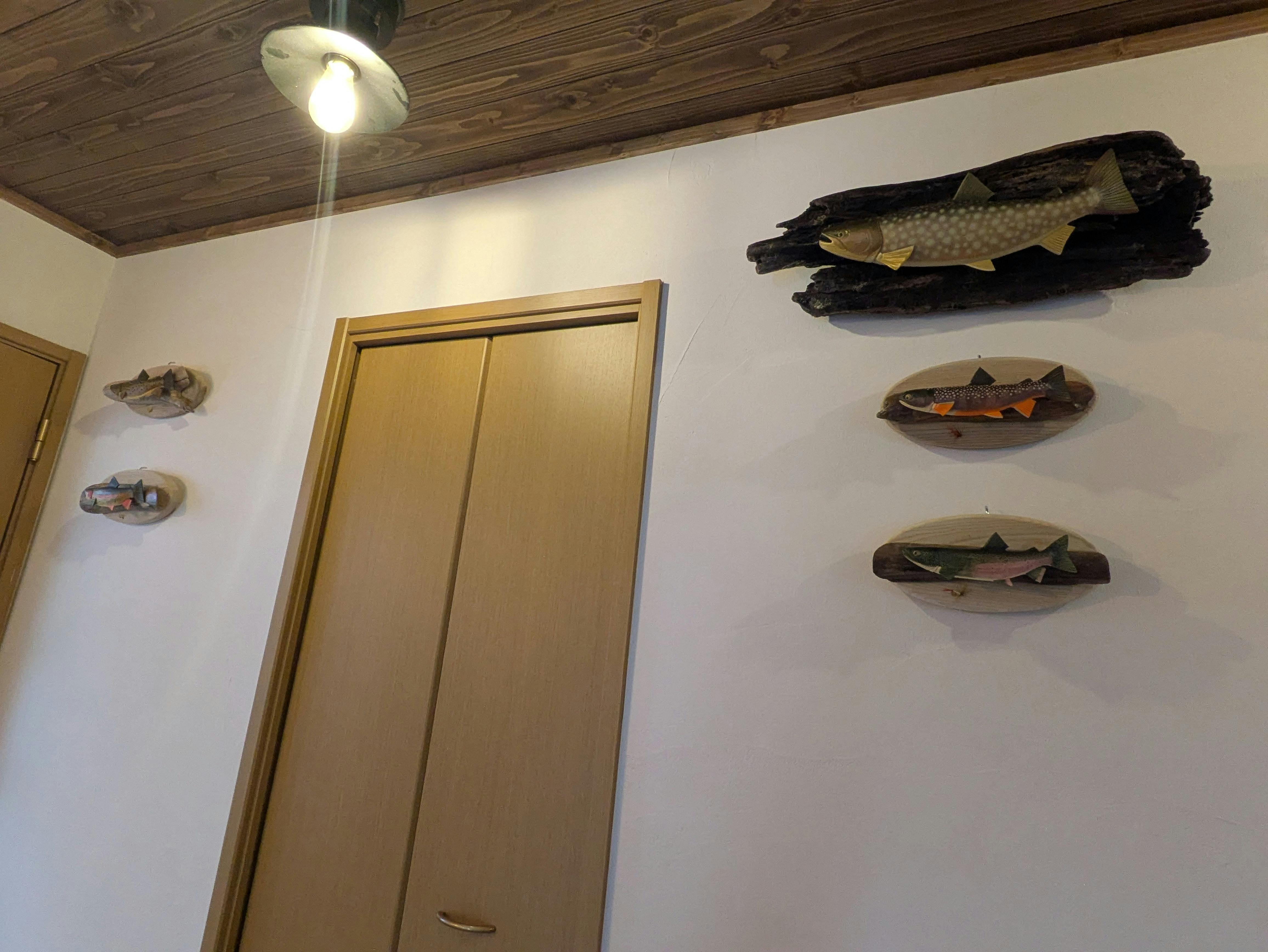 阿寒湖に釣りに行った際に、釣果よりも最大の収穫となった木彫りのトラウトオブジェ。