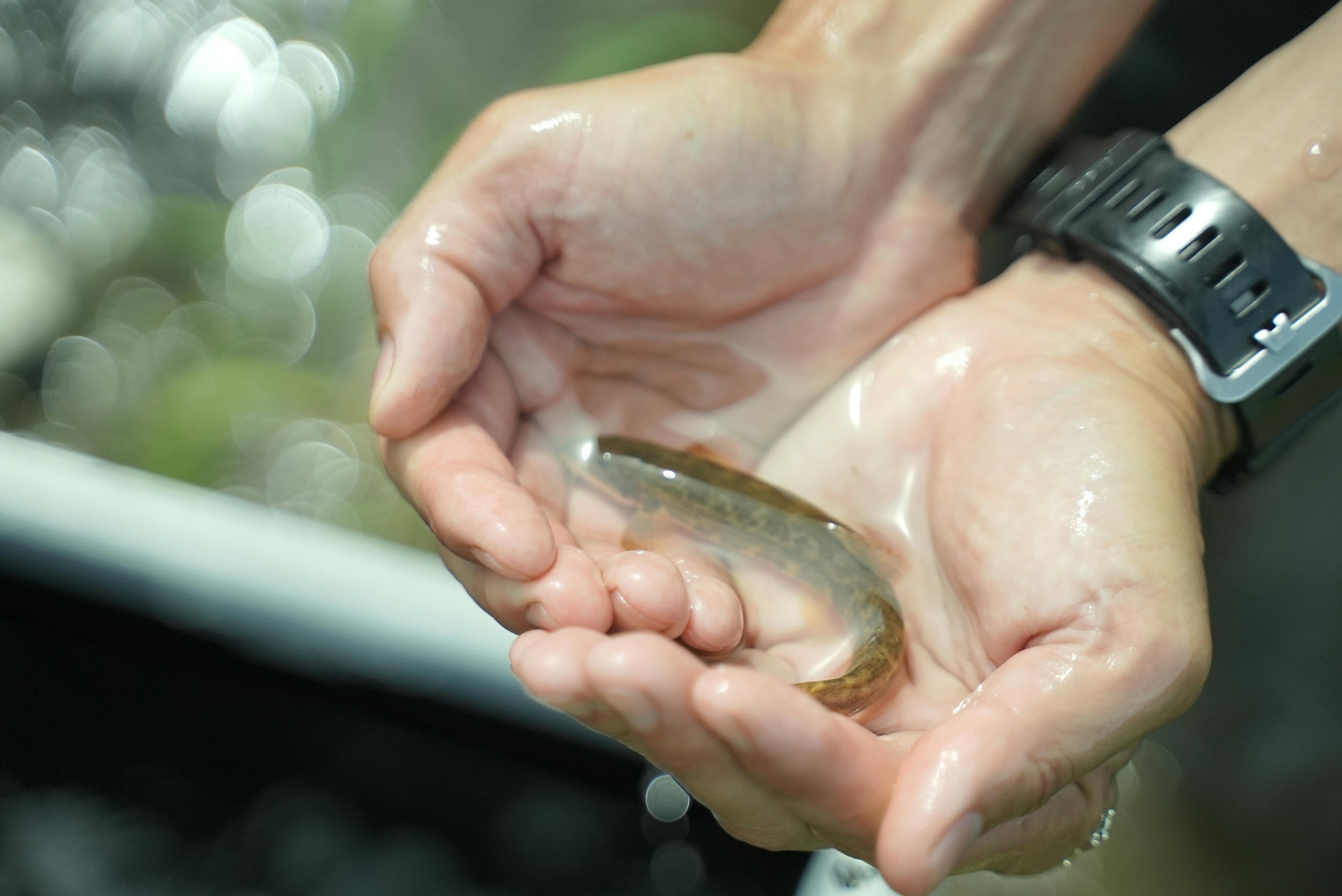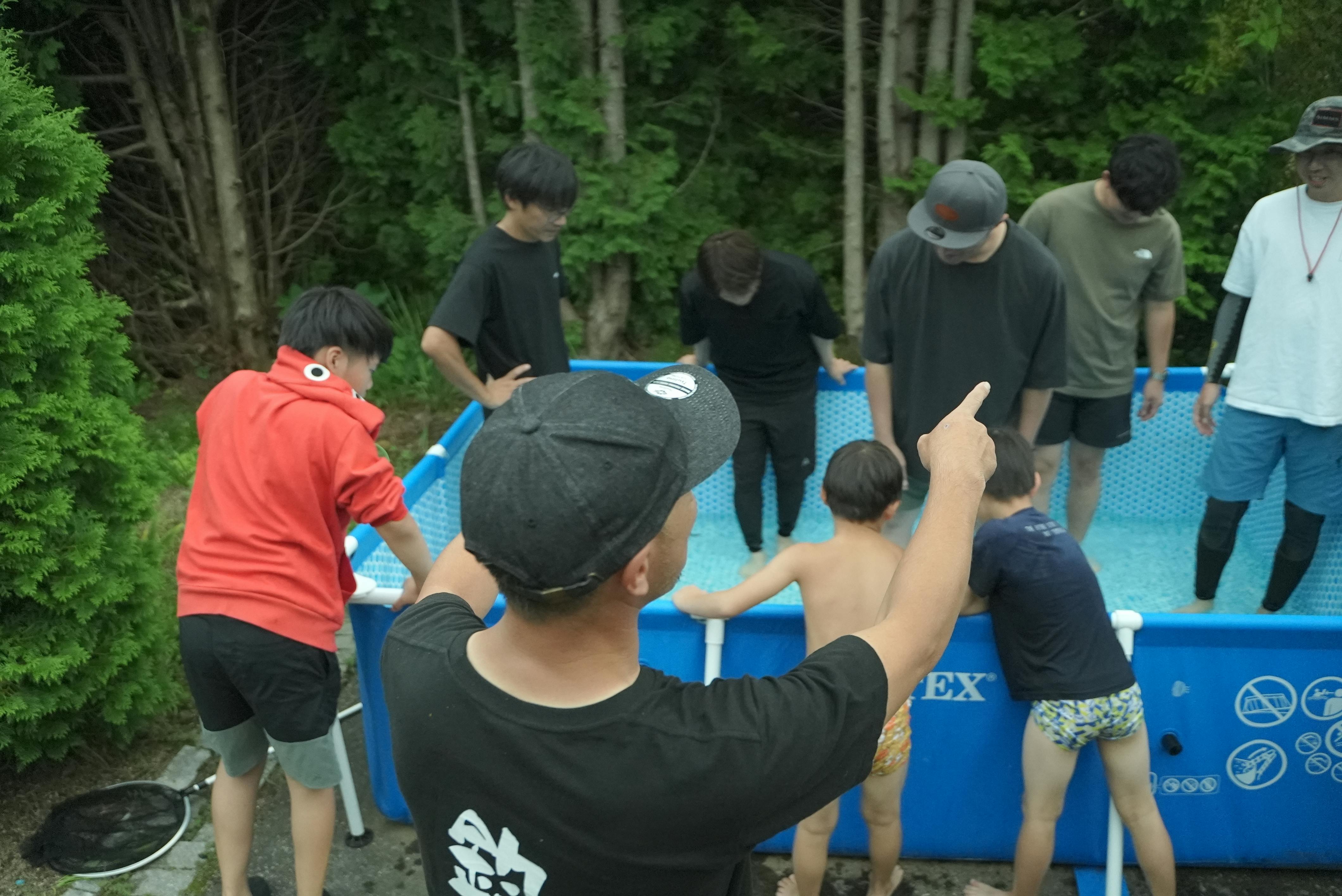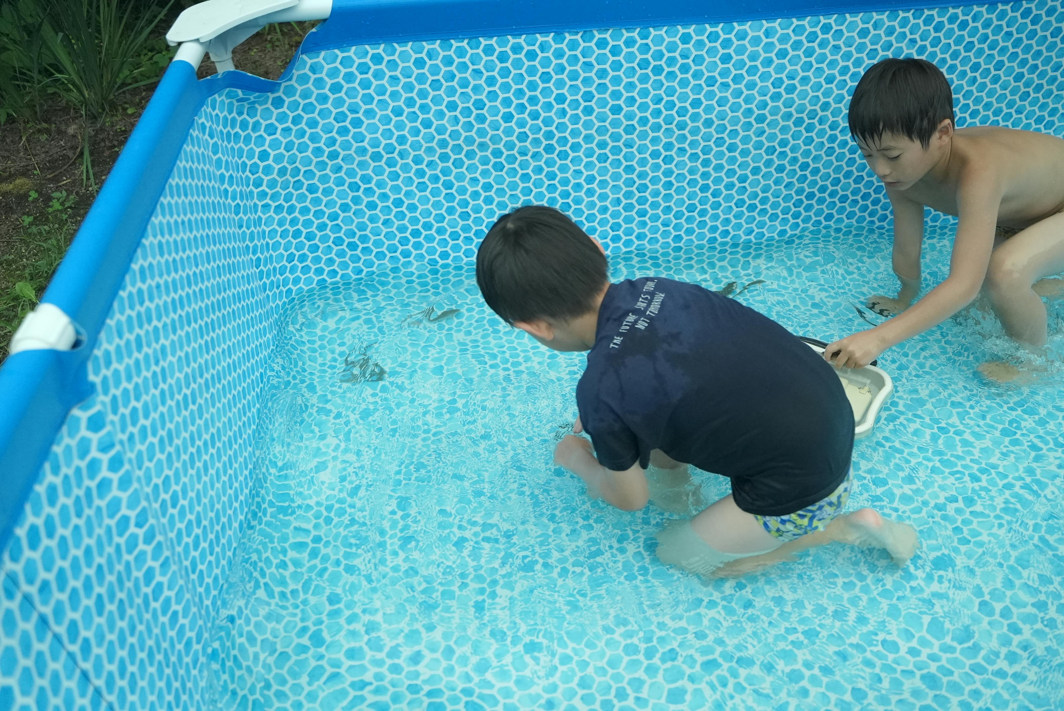 景品を掛け、開催された捕ったウグイとドジョウの掴み取り選手権!