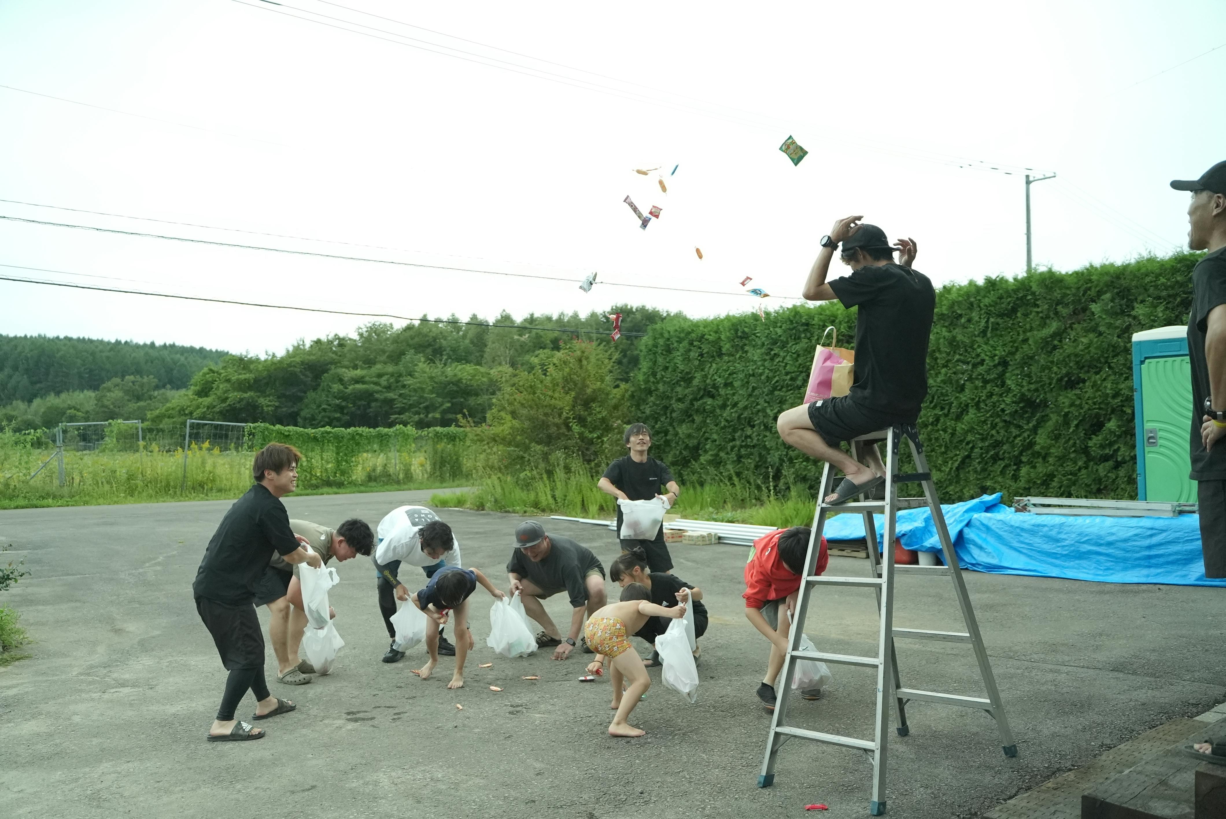 掴み取り選手権のあとは、ヒトトキベースの商品券が景品のじゃんけん大会をやったり、お菓子投げをやったりと、大人も子供も最後まで真剣!