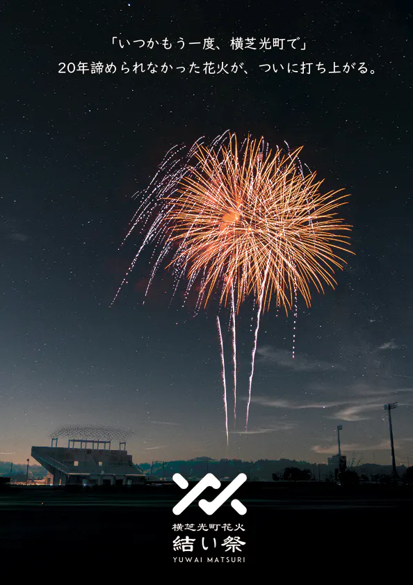 地域の文化や伝統を再び息づかせたい、人と人や様々なものが結ばれる事で共に地域を盛り上げたいという強い想いから、私たちは「横芝光町花火結い祭」として花火大会の復活を決意しました。地域の人々が再び一堂に会し、共に楽しむことができる場を提供すること、以前花火大会を開催してくれていた先人に感謝を伝えること、次世代が横芝光町を誇れる花火大会を復活させてバトンを渡すことが、私たちの使命と考えています。