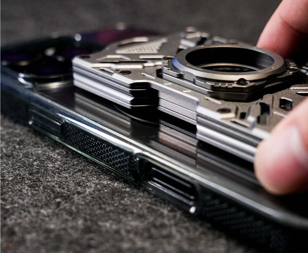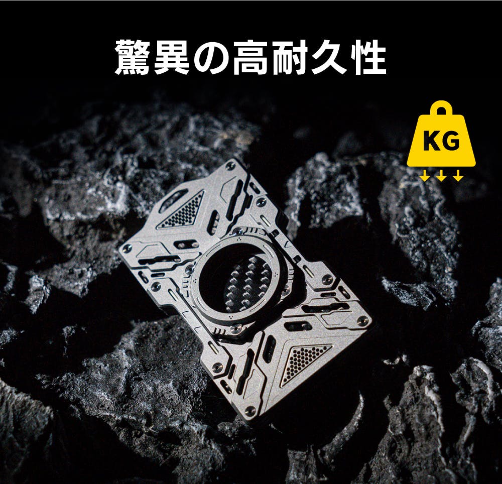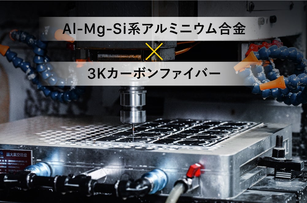 アルミニウム合金をCNC加工で精密に削り出し、3Kカーボンファイバーと組み合わせることで、車の重量にも耐えられる高い耐久性を実現しました(自社試験値)。