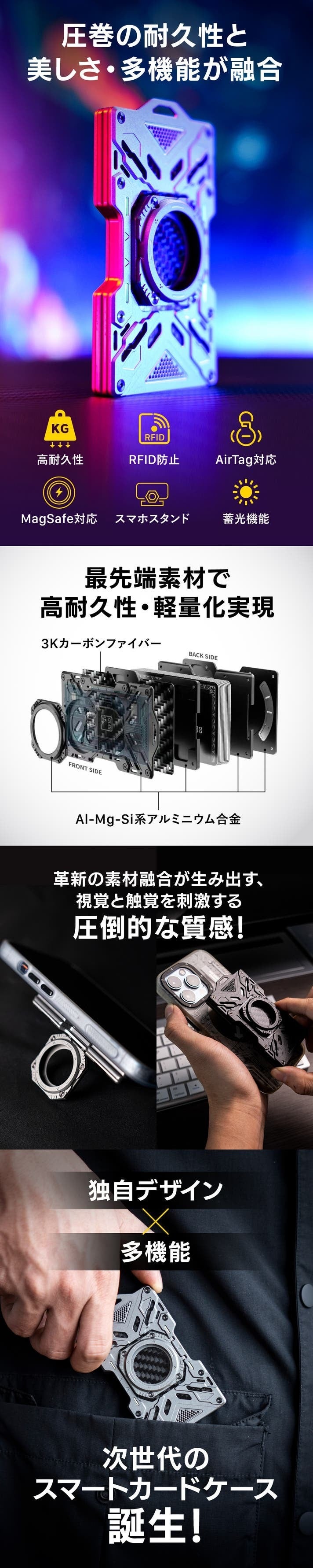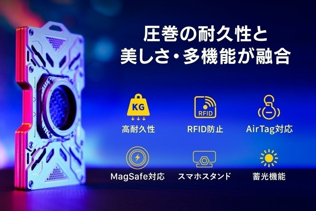 RFID防止・AirTag収納・MagSafe・蓄光・スマホスタンド機能など、日常をより快適にする多彩な機能を搭載したカードケースです。