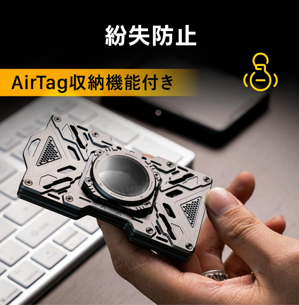 AirTag収納機能付き。AirTagを入れておけば、大切なカードの紛失防止や位置確認が簡単に行えます(※AirTagは付属しておりません)。
