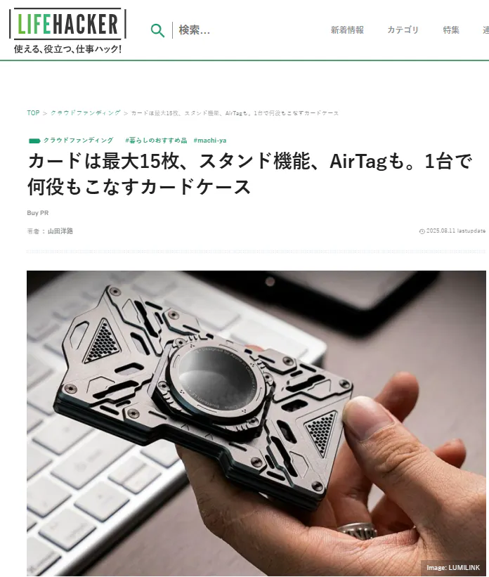 この度、月間2,600万PVを誇る大手ライフスタイルメディア「Lifehacker」にて、弊社のカードケースが紹介されました。